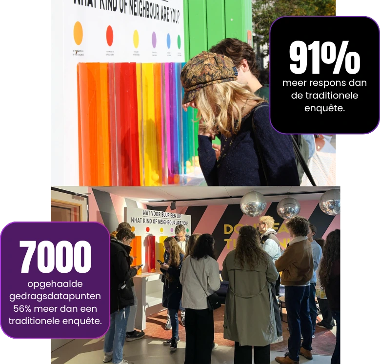 Met buurtfestival en life size buurtype generator “ontdek welk buurtype jij bent” verzamelden we gedragsdata die bewonersprofielen opmaakte en barriers blootlegde. -